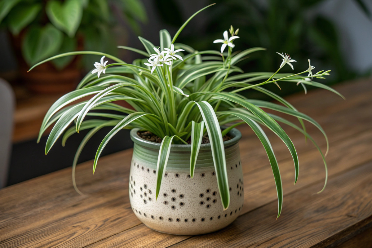 1) Хлорофитум (Spider plant, Chlorophytum comosum)