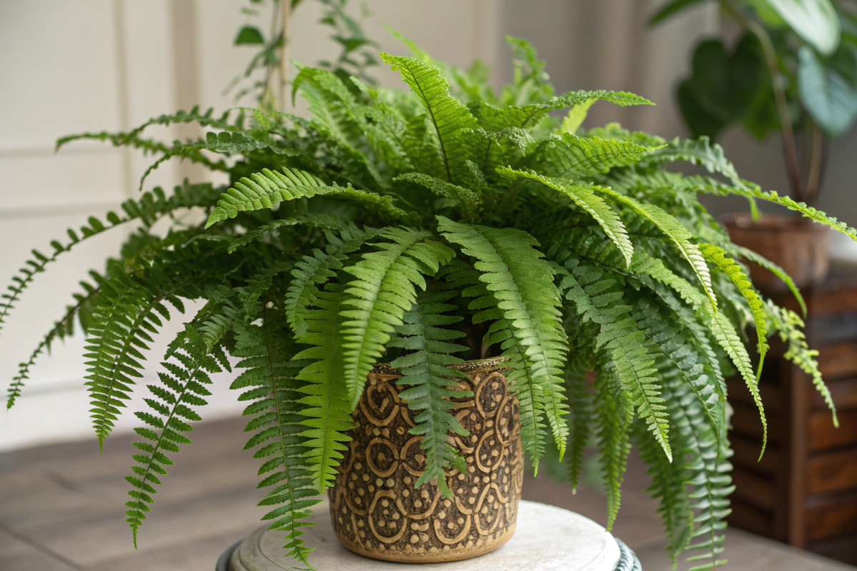 3) Бостонский папоротник (Boston fern, Nephrolepis exaltata)