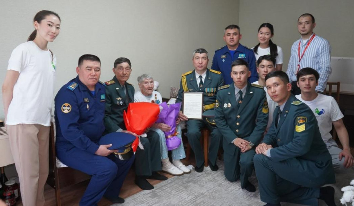 В Алматы военнослужащие поздравили фронтовичку со 102-м днем рождения