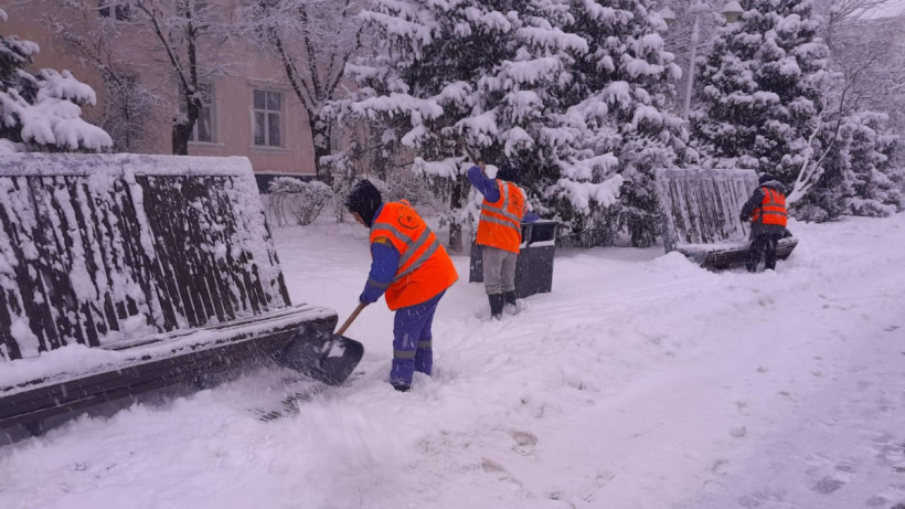 После обильного снегопада, начавшегося ночью 8 января, коммунальные службы Алматы активно занимаются расчисткой улиц и тротуаров. Для работы привлечены 1 115 сотрудников и 475 единиц техники, включая 194 пескоразбрасывателя.