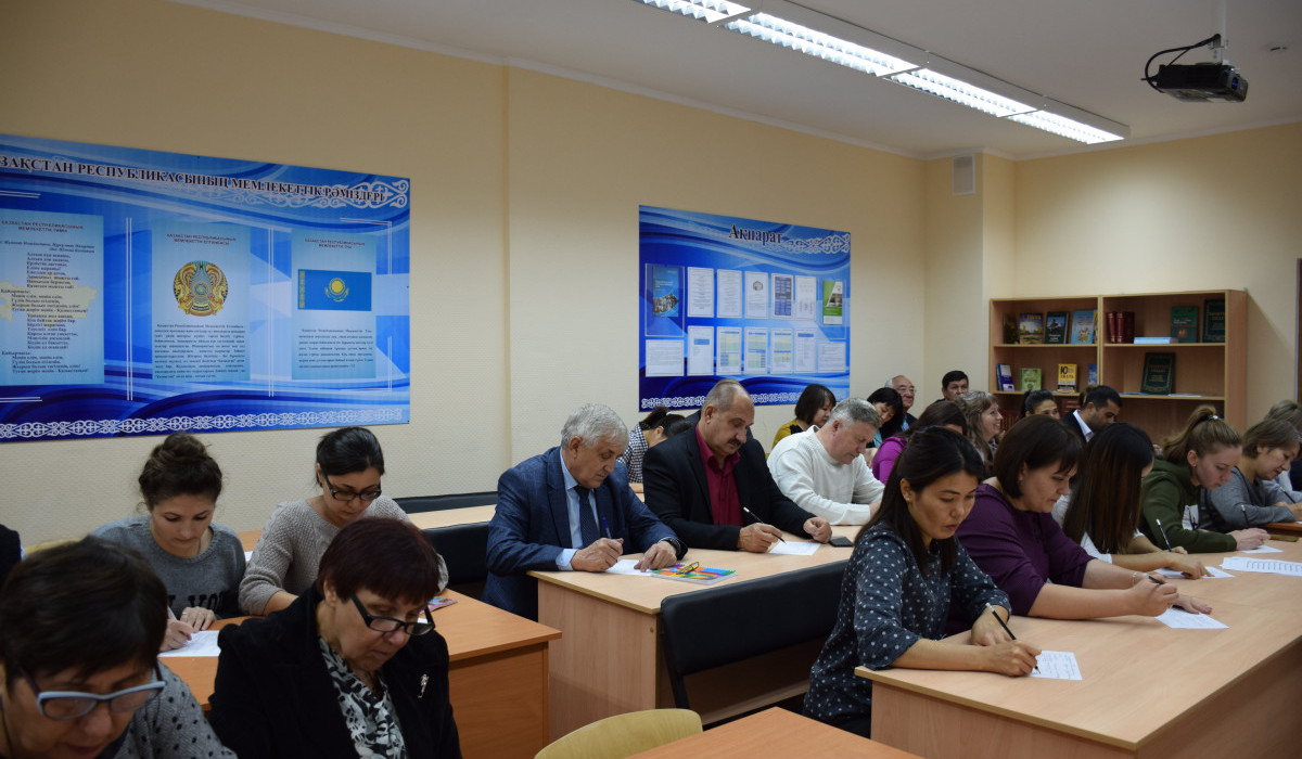 Руководитель областного учебно-методического центра казахского языка Каратай Тулекеев, председатель областного совета ветеранов войны и труда Толегул Госман отметили, что изучение государственного языка, использование его во всех сферах жизни различными слоями населения - это необходимость, продиктованная велением времени, возрастающей ролью казахского языка как важного фактора консолидации казахстанского общества.