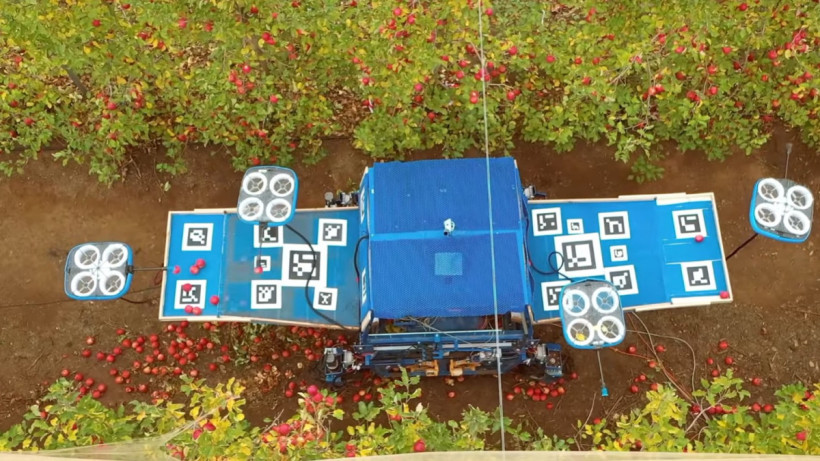 Израильский стартап Tevel придумал комбайн, который собирает яблоки с помощью дронов на привязи, сообщает ИА El.kz