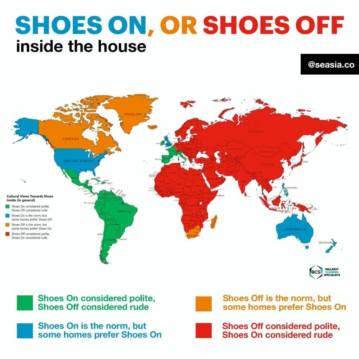 Казалось бы, мелочь — обувь в прихожей, но именно такие детали чаще всего выдают культурный код общества. По глобальной инфографике, посвящённой бытовым нормам, видно, что подход к этому вопросу в разных регионах планеты отличается радикально. Где-то обувь в доме воспринимается как естественная часть повседневности, а где-то — как нарушение личных границ.