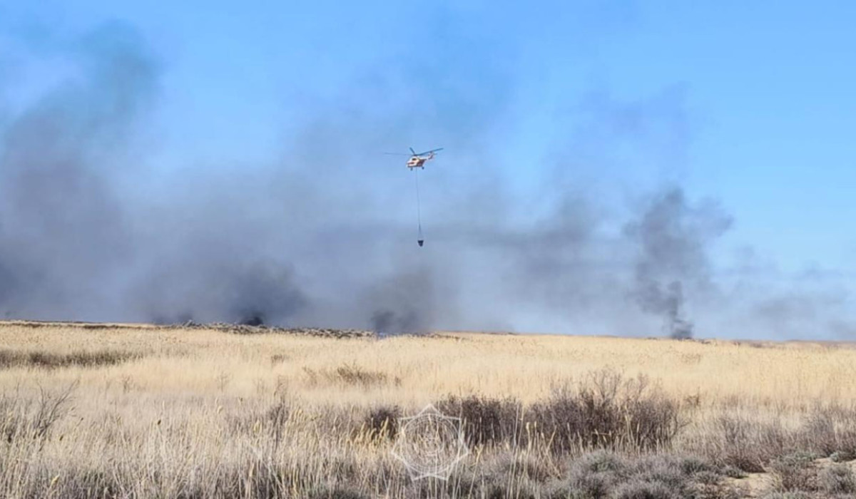 По прибытию было установлено, что горение происходит отдельными островками вблизи речки Караозек. Тушение очагов горения проводится с помощью мотопомп, в доступных местах при помощи хлопушек и ранцевых лесных огнетушителей. Также для ликвидации природного вертолетом АО «Казавиаспас» с водосливным устройством было произведено 53 сброса воды.