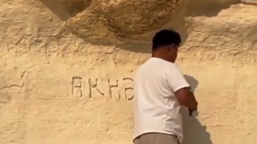 Активно обсуждаемый ролик, где некий мужчина вырезает на стене надписи в ущелье Ыбыкты Сай, получил продолжение, передает El.kz со ссылкой на Lada.kz.