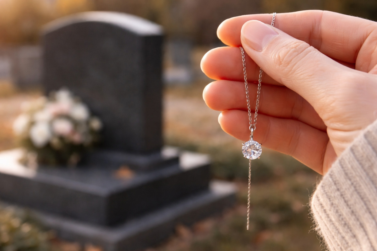 Идея звучит почти провокационно. Вместо мемориального комплекса – камень размером около 1 карата. Вместо ограды – оправка кольца или кулон на цепочке. Не памятник на кладбище, а предмет, который можно держать в руке. Или носить как украшение на любой части тела. А потом оставить в наследство детям.