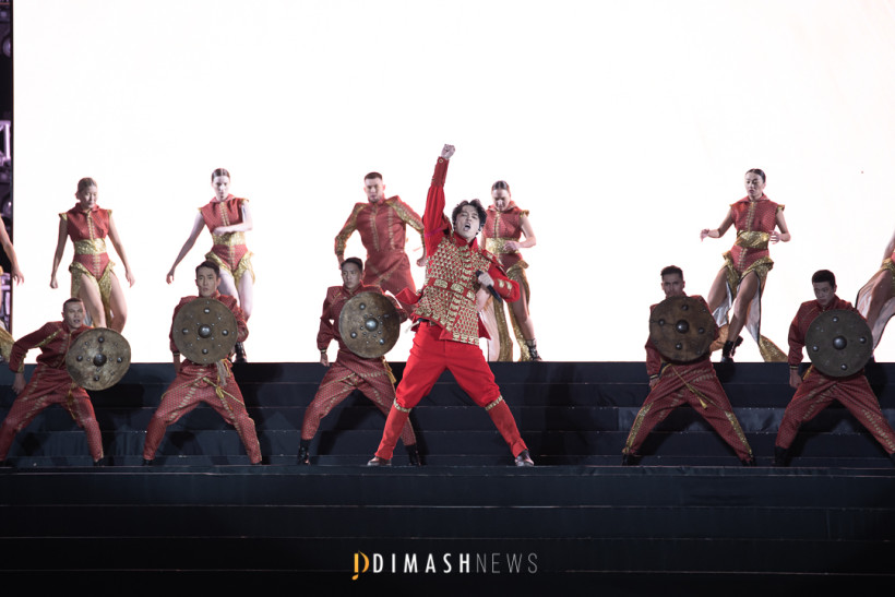 Музыкальное событие собрало более 30 тысяч зрителей. В начале шоу Димаш в эффектном образе Золотого человека спустился на сцену с высоты 20-метрового лед-экрана.