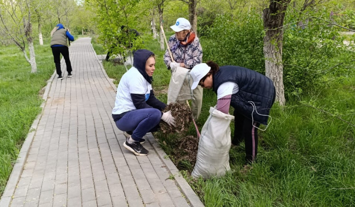 Волонтёры и этнокультурные объединения вместе привели в порядок парк в честь Дня единства народа Казахстана