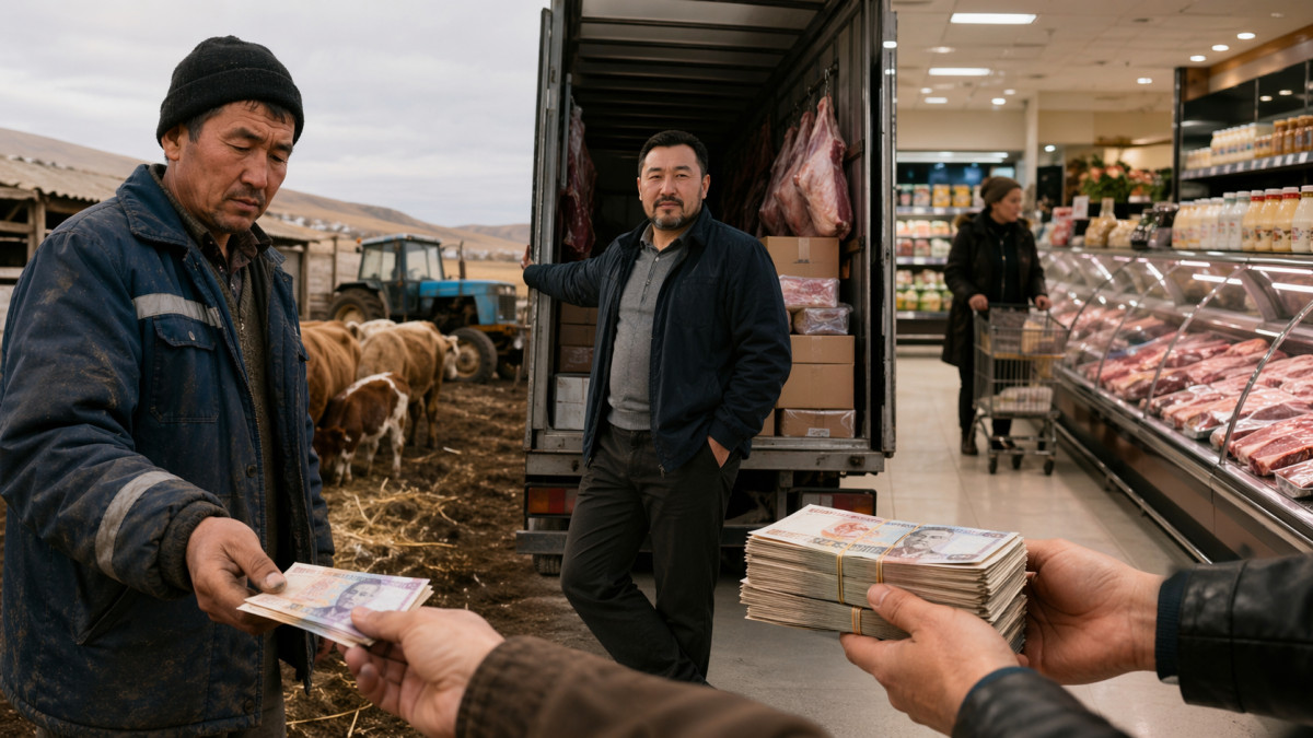 Чтобы понять, почему мясо стоит столько, сколько стоит, нужно разобраться в самой цепочке. Каршыга Малик объясняет: между фермером и прилавком всегда есть несколько игроков, и это закономерная структура любого продовольственного рынка.