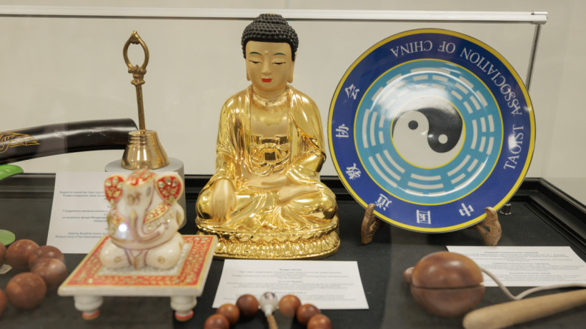 Среди экспонатов — индуистские статуэтки, ритуальные сосуды и колокольчики, а также фигурка Ганеши, символа мудрости и процветания.