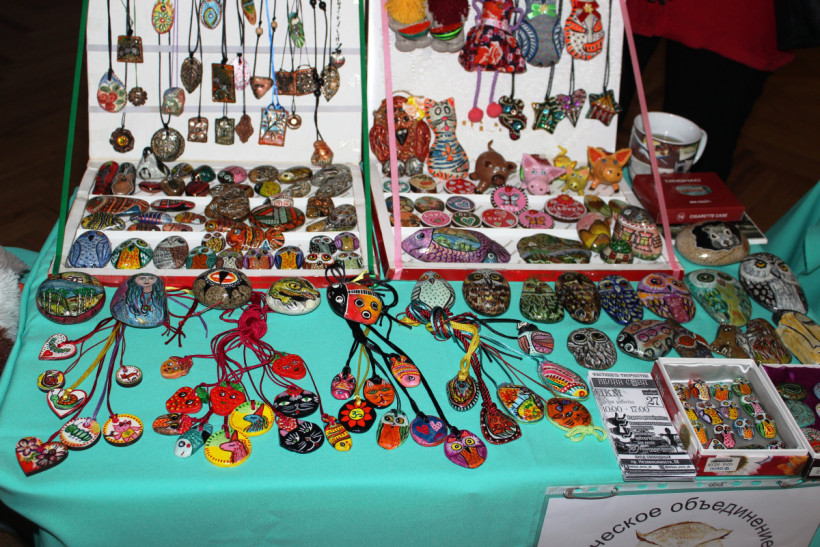 Было представлено множество самых разных работ: деревья из бисера, вязаные мягкие игрушки, вещицы из дерева, ловцы снов и многое другое. Гости выставки будто «погрузились» в сказку. Невероятный лес с волшебными деревьями, безумно добрые вязаные зверьки, и, конечно же, «интерьер», «нарисованный» яркими красками осенней природы.