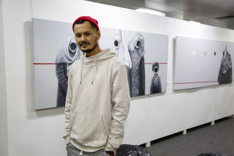 Кейіпкерлерімнің бетін әдейі жасырмаймын. Алғашында олардың беті толық көрінеді, бірақ жұмыс барысында олар боялып кетеді. Меніңше, бұл картинаға салмақ қосып, көрермен көкейінде сұрақ тудырады.