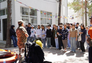 Құтқарушылар балалар мен педагогтарға қауіпсіздік ережелерін үйретіп жатыр
