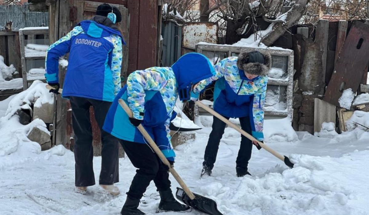 «Таза Қазақстан»: еріктілер қарт тұрғындардың ауласының қарын күреді