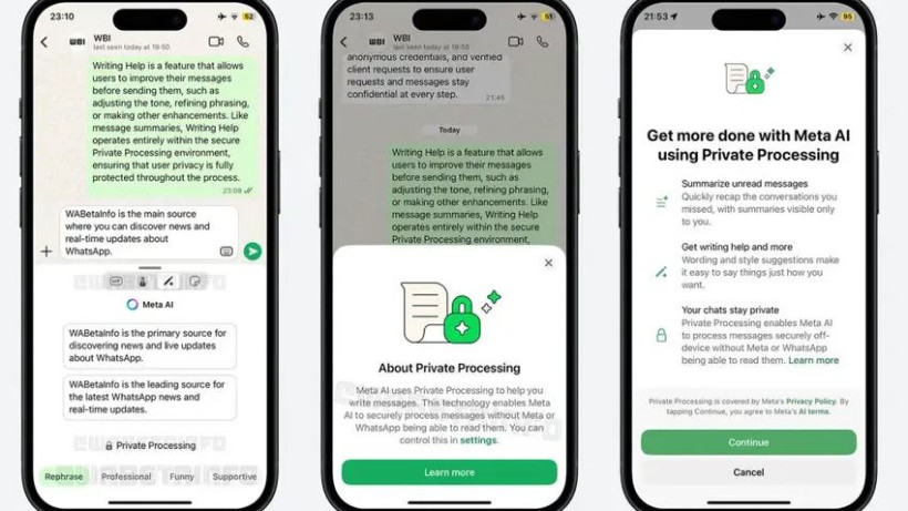Жүйе компанияның басқа қосымшаларында да қолданылатын «Жеке өңдеу» (Private Processing) технологиясына негізделген. Жобалаушылардың айтуынша, бұл функция деректердің құпиялығын толық қамтамасыз етеді: хабарламалар анонимді түрде өңделеді және шифрланады, компания қолданушы деректерін сақтамайды және әңгімелер тарихын сканерлемейді – тек дәл сол сәтте енгізіліп жатқан мәтінмен жұмыс істейді.