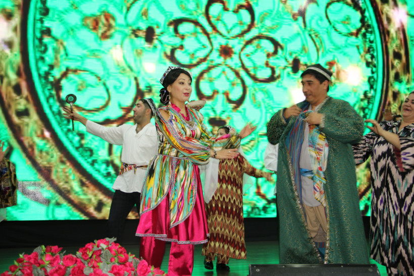 Концертте Шымкент қаласынан келген өзбек этносының ән-би ұжымдары өнер көрсетіп, ұлттық аспаптарында түрлі композициялар орындады.