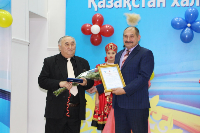 ҚХА мүшесі, «Ақмола облысының орыс қауымы» ҚБ төрағасы Александр Артеменко «Ақмола облысының орыс қауымымен» өзара ынтымақтастық үшін шығармашылық ұжымдарға алғыс хаттар мен естелік сыйлықтар табыс етті.