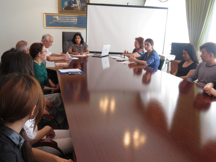 Жиынға қатысушы оқытушылар мен студенттерге  П.Мамедова «Қазақ тілінде 100 жаңа оқулық»  жобасының негізгі бағыттары туралы ақпарат»,