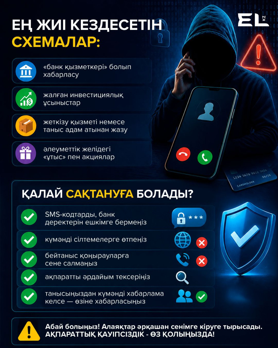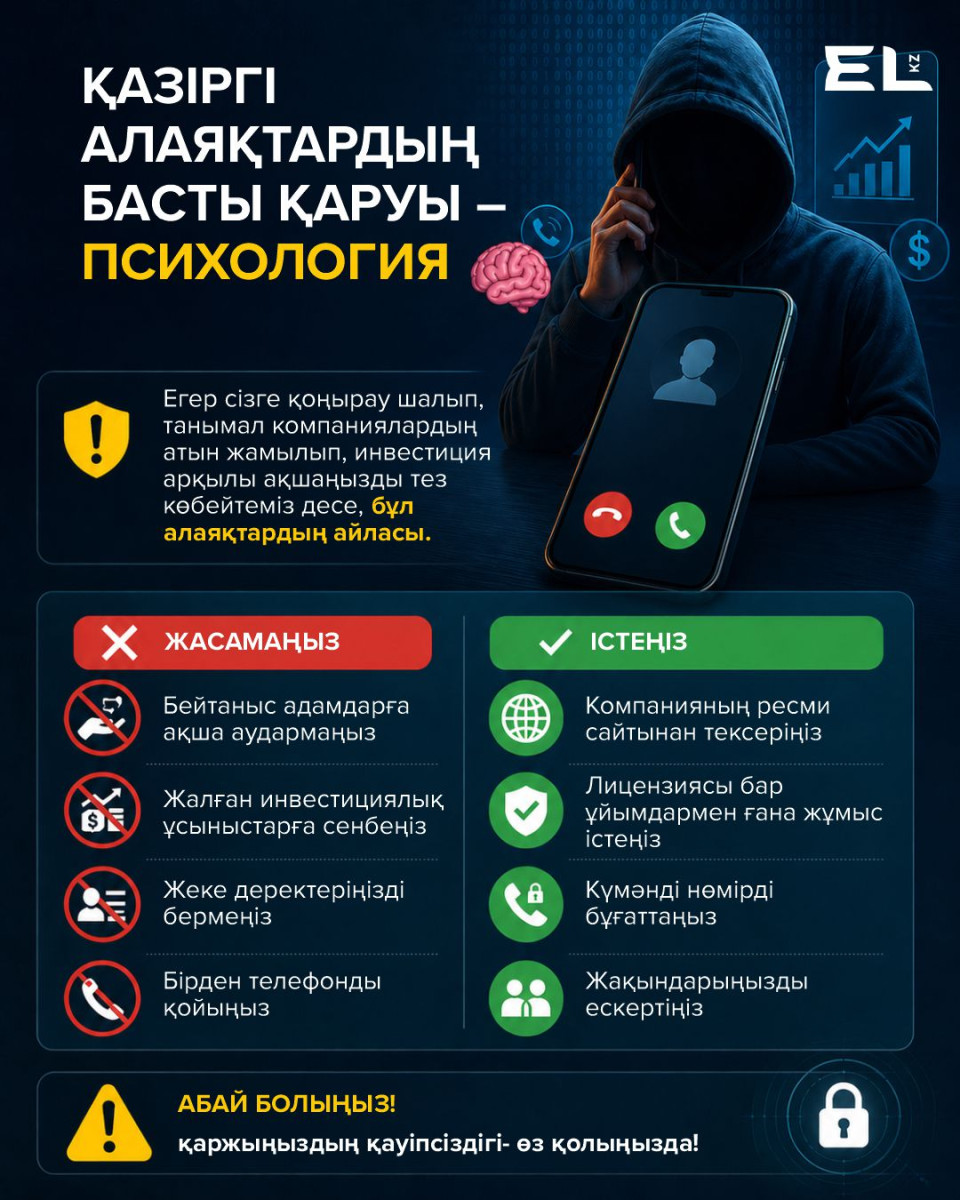 Мамандардың айтуынша, қазіргі алаяқтардың басты қаруы – психологиялық қысым. Олар адамды асықтырады, қорқытады немесе тым тиімді ұсыныспен қызықтырады. Осындай сәтте адам ойланып үлгермей, қателік жіберуі мүмкін.