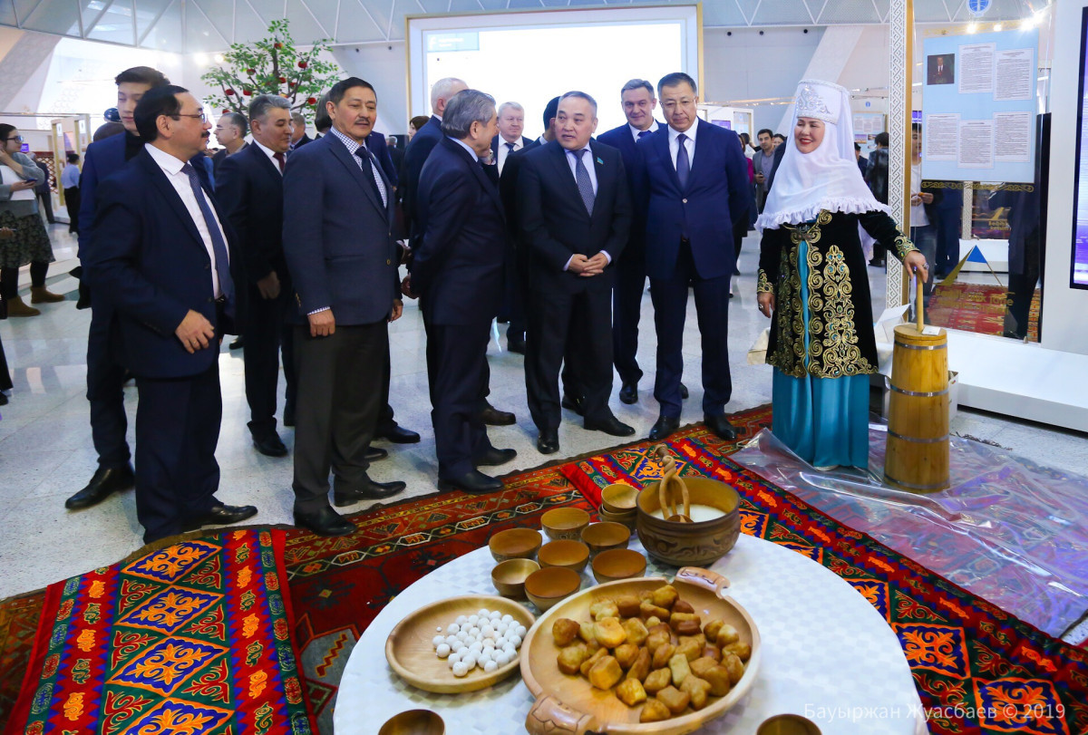 Атриумда орналастырылған «Қымыздан қуат алған біртұтас ел» көрмеге қатысушылар мен қонақтар ерекше қызығушылық танытты. Өйткені онда Қазақстанға жер аударылған халықтарды құтқару мен аман сақтаудағы қазақ халқының рөлін, сондай-ақ Мемлекет басшысының «Ұлы Даланың жеті қыры» мақаласында атап өтілген қазақтардың жылқыны қолға үйретуінің әлемдік атқа міну өркениетіндегі рөлін ашып көрсететін тарихи жәдігерлер мен музей экспонаттары мол болды.